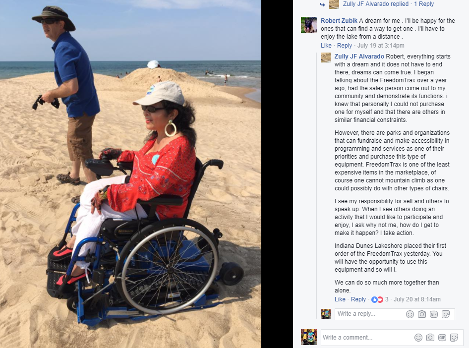 Zully JF Alvarado tests the Freedom Trax on the beach. Photo used with permission. 74 , 1 Comments comments